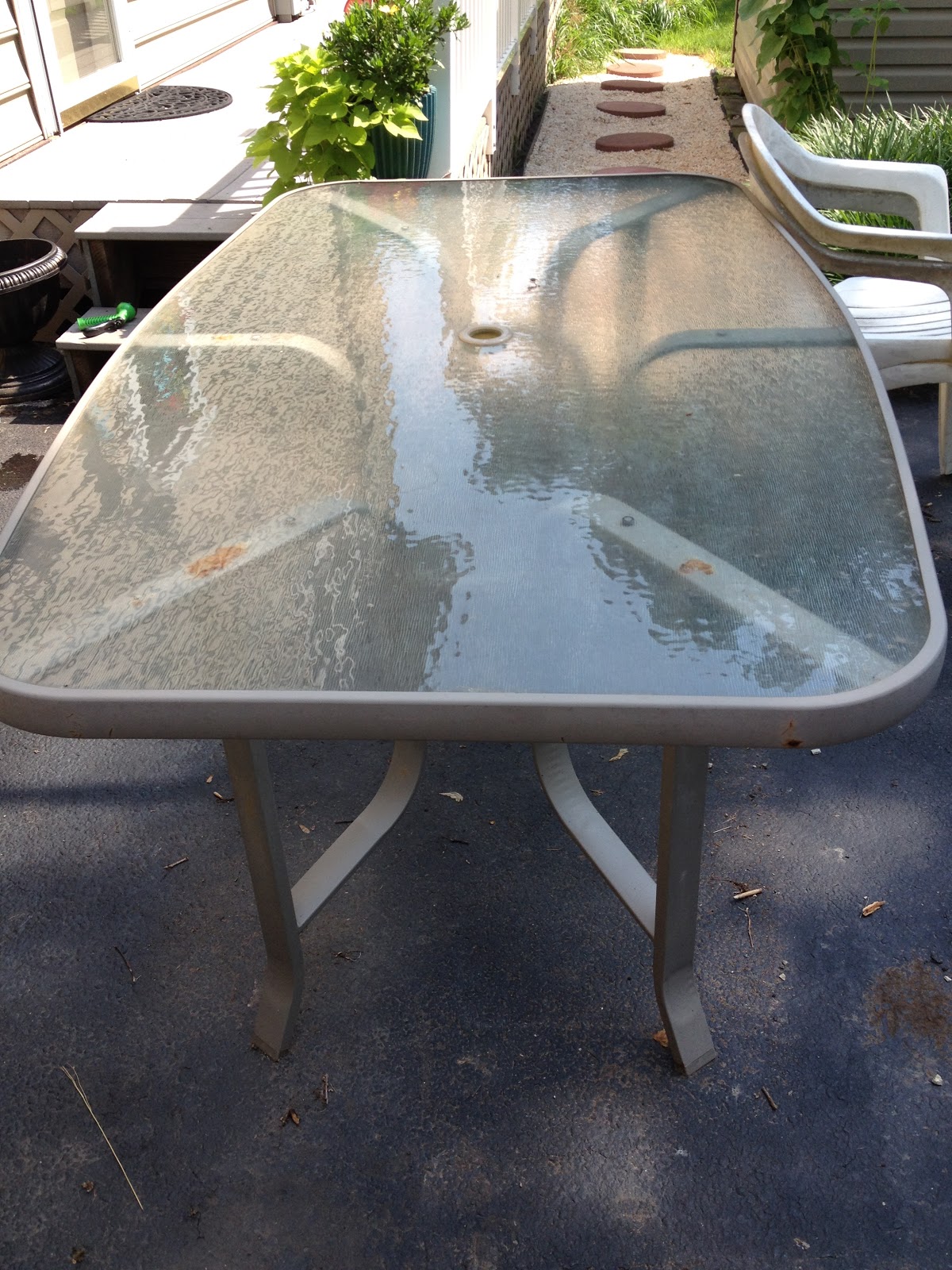 This is the table, it's big and heavy. The set was a faded tan/beige color and was rusty in spots as you can see.